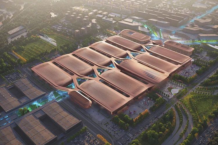 项目概况:本项目主要分为展馆、会议、酒店三个建筑功能区。展馆主要由7个有柱展厅、2个无柱展厅、连桥、东登录厅、北登录厅和南登录厅组成。9个展厅,平面尺寸108x201米,地上2层,局部地下1层,无柱展厅最大屋面高度24.5米,有柱展厅最大屋面高度20.6米。东登录厅,地上3层,地下2层,最大建筑高度36米。北登录厅,地上2层,地下1层,最大建筑高度23.85米。南登录厅,地上3层,最大建筑高度23.85米。会议,地上4层,地下1层,最大建筑高度40米。酒店地上8层、地下1层,最大建筑高度44.85米。